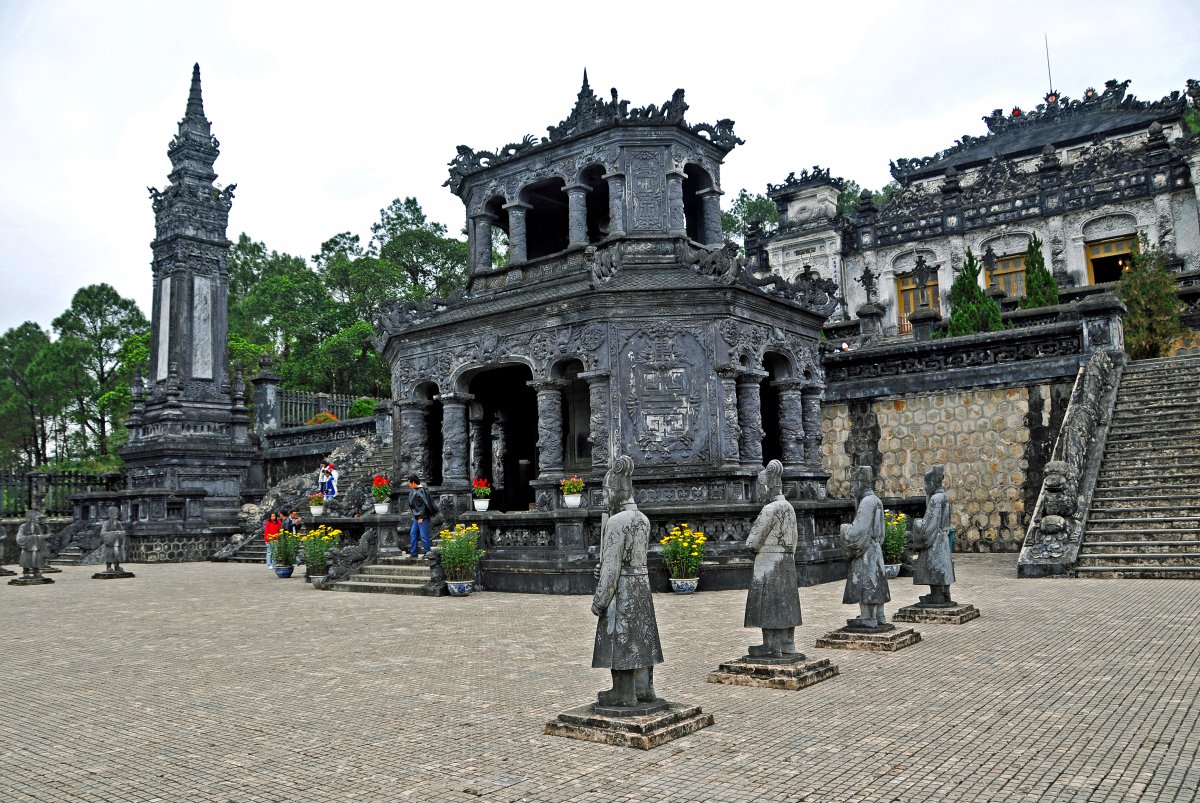 Закуска. Отпътуване за Хюе – последната феодална столица на Виетнам. Този малък и спокоен град е известен с величествената си архитектура, пагоди и кралски гробници, разположени в много от околните села и хълмове. Обяд. Пътят минава през виещия се проход Хай Ван. Изгледът от върха на прохода е една от най-впечатляващите панорамни гледки във Виетнам. По пътя се посещава Чамският музей в град Дананг , Китайския плаж и Мраморната планина , чиито върхове символизират петте елемента на Вселената. Вечеря. Нощувка.
