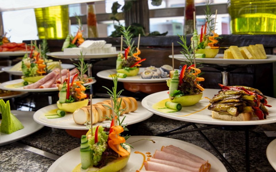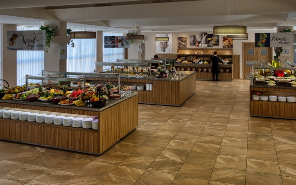 Закуска: 07:30 – 10:00 ч. - бюфет с топли и студени ястия, здравословна храна и диетичен бюфет, голямо разнообразие от топли напитки, сокове и безалкохолни напитки.